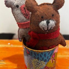 With a wide range of coloured felts, beads and sequins, you can choose from suggested ideas or bring your own. Shapes include bears, flowers, hearts, stars and trees ā decorated, hand sewn and stuffed to make small decorations or brooches.